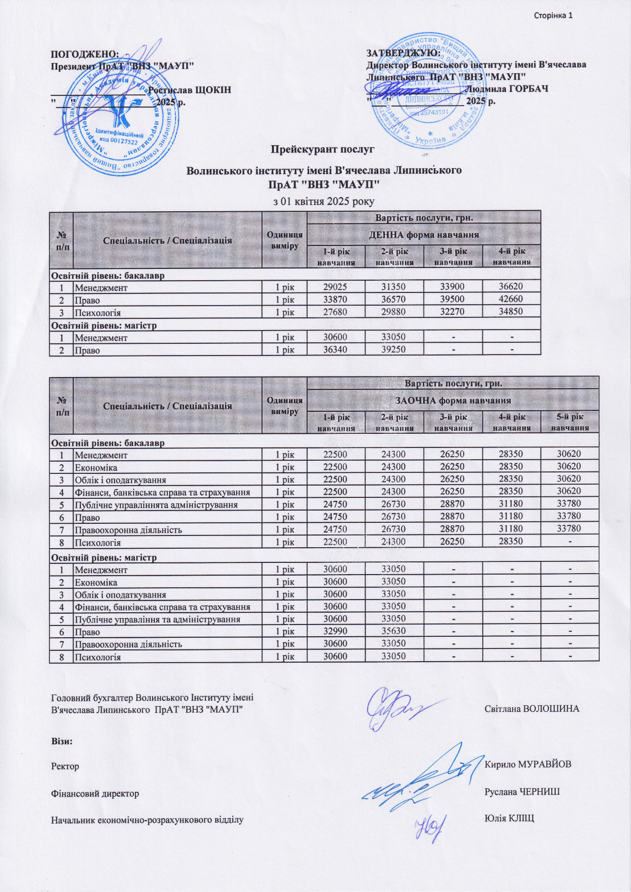 Вартість навчання