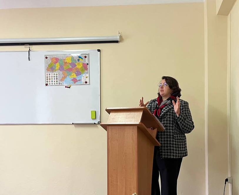 Під час зустрічі Тетяна Петрівна поділилася власним професійним досвідом та розповіла про особливості діяльності нотаріуса в умовах воєнного стану, цифровізації правових послуг і змін у законодавстві України. Лекторка акцентувала увагу на ключових принципах нотаріальної діяльності — законності, неупередженості, конфіденційності та відповідальності.