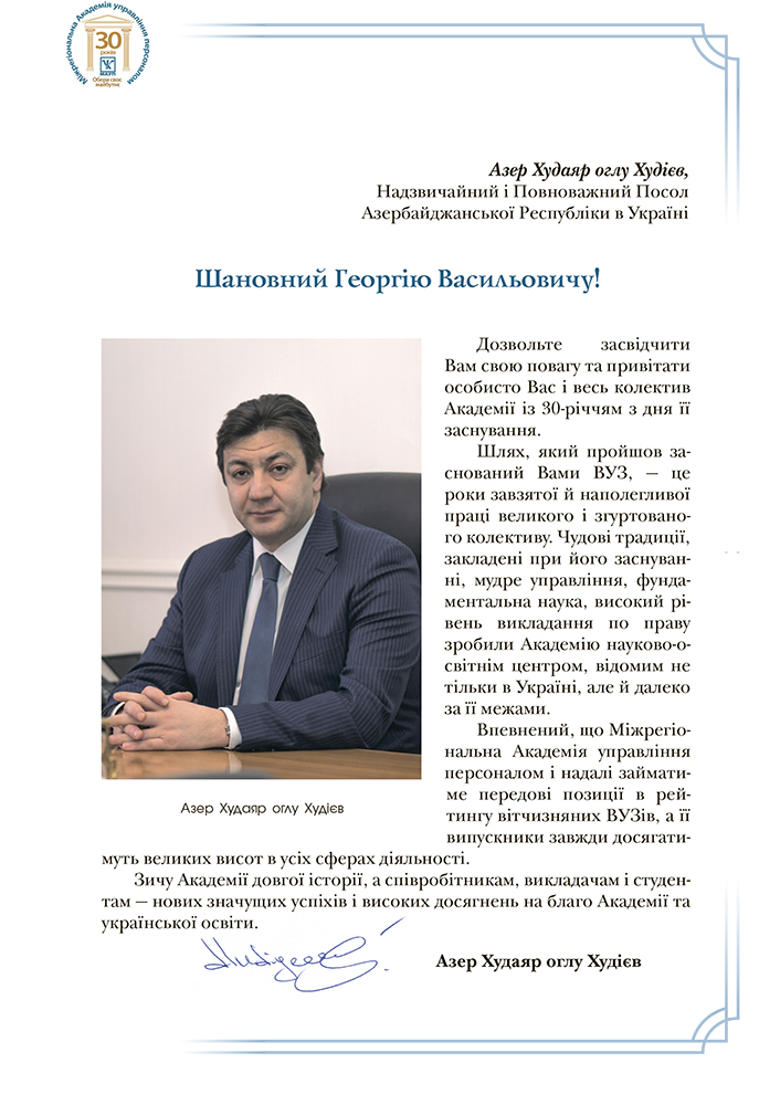 Посол Азербайджанської Республіки в Україні привітав Академію із 30-річчям з дня її заснування