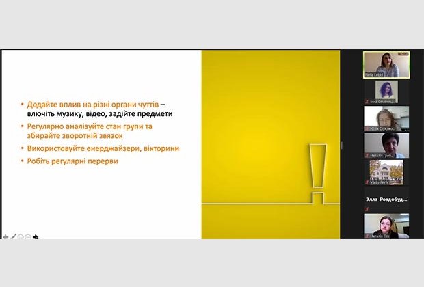 Захід виявися дуже корисним для збагачення валізки викладацьких технік та прийомів, важливих для організації освітнього процесу належної якості в умовах дистанційного формату.