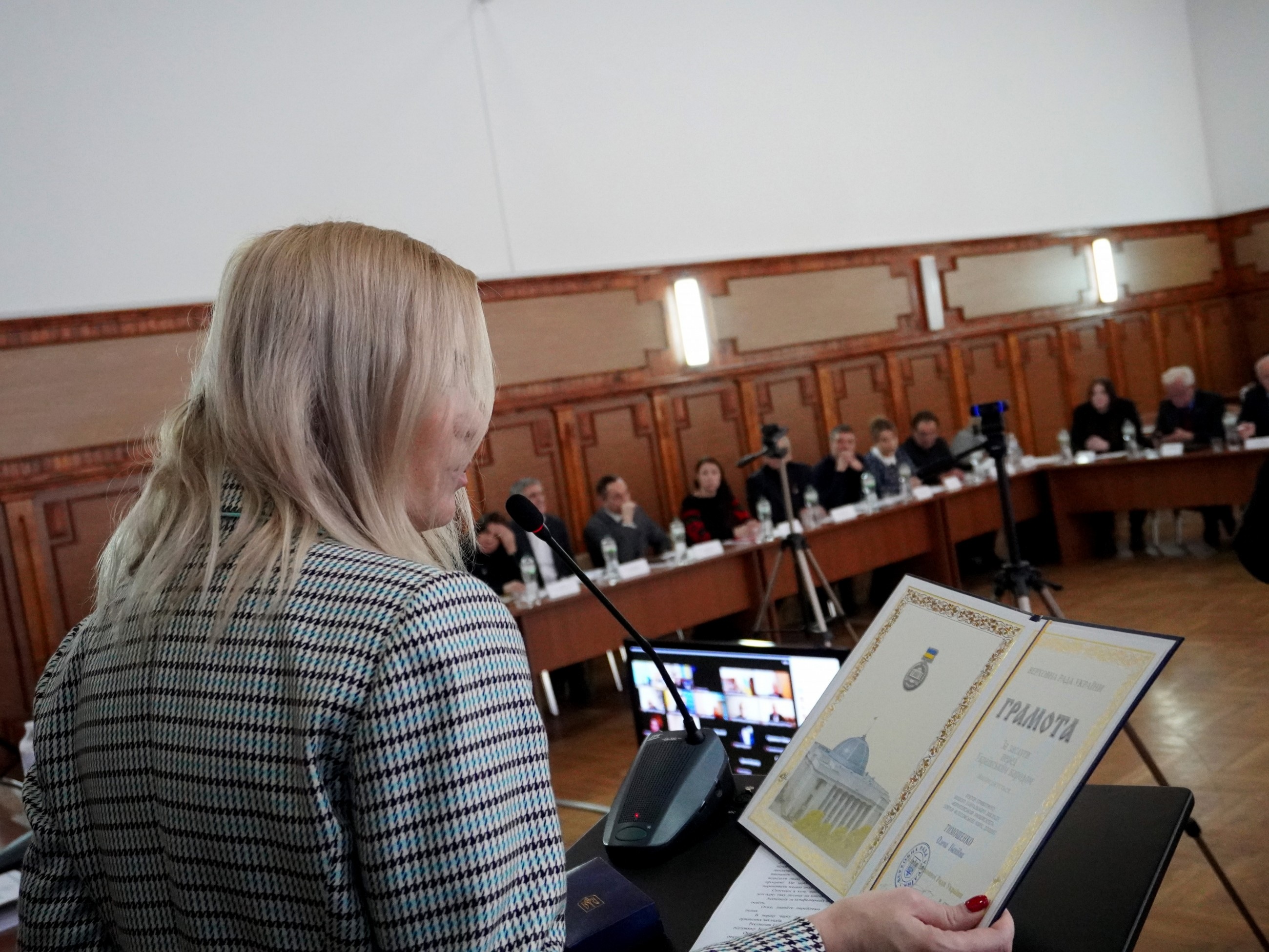 Голова підкомітету з питань вищої освіти Комітету Верховної Ради України з питань освіти, науки та інновацій, народний депутат України Юлія Гришина передала вітання та вручила подяки окремим керівникам закладів вищої освіти від Голови Верховної Ради України та Комітету Верховної Ради України.
