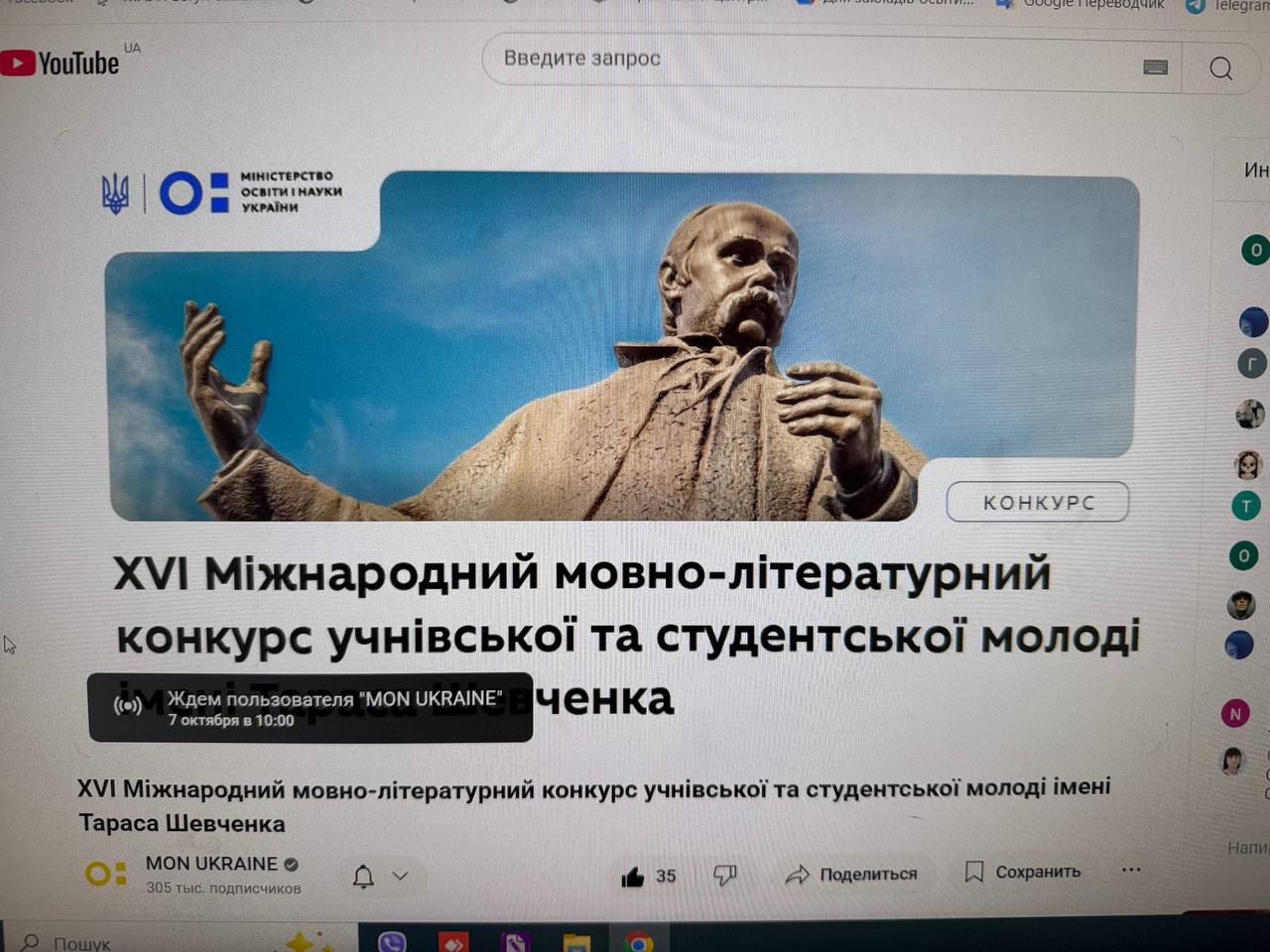 Представники Студентської ради Волинського інституту долучилися до церемонії відкриття ХVІ Міжнародного мовно-літературного конкурсу учнівської та студентської молоді імені Тараса Шевченка. Відкриття конкурсу транслювалояс на офіційному ютуб-каналі Міністерства освіти і науки України 07 жовтня 2025 року. Захід був огранізований з метою вшанування творчої спадщини Т.Г. Шевченка та