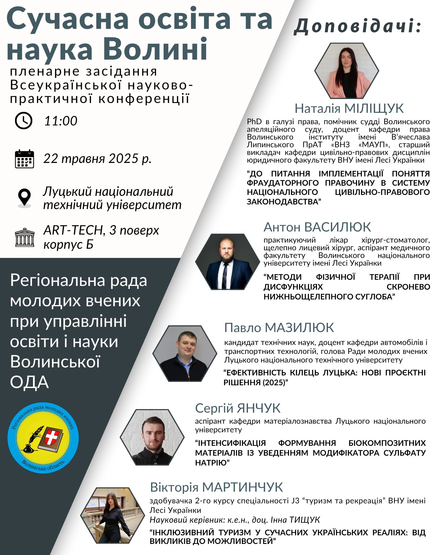 За підтримки Регіональної ради молодих вчених при управлінні освіти Волинської ОДА разом з Волинським Інститутом Ім. В.Липинського, Луцьким національним технічним університетом та Волинським інститутом ім. Лесі Українки вийшов друком Збірник Всеукраїнського науково-практичної конференції студентів, аспірантів та молодих вчених "Сучасна освіта та наука Волині".
